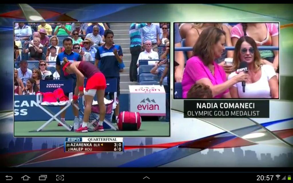 Simona Halep continuă să facă spectacol la nivel mondial. Tenismena româncă a depăşit-o în sferturile de la US Open pe Victoria Azarenka, calificându-se în semifinale. Halep a fost susţinută din tribune de Nadia Comăneci care a răguşit pentru ea.