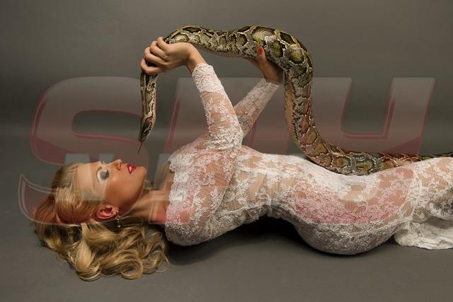 Cum își vindecă o bombă sexy fobiile? Pozează aproape goală în timp ce animalul de care îi e teamă se încolăcește pe trupul ei