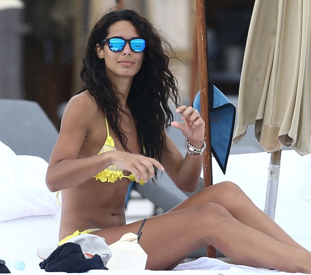 Raffaela Modugno a făcut show sexy la plajă. Modelul şi-a etalat formele într-un costum de baie galben.