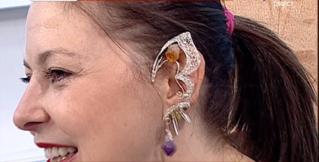 "Sunt cercei tip elf din noua mea colecţie, sunt din cristale naturale, neşlefuite, pentru ca energiile acestora să nu fie distruse. Colecţia o voi lansa pe 2 iulie, în parcul Carol," a mai spus Rita.