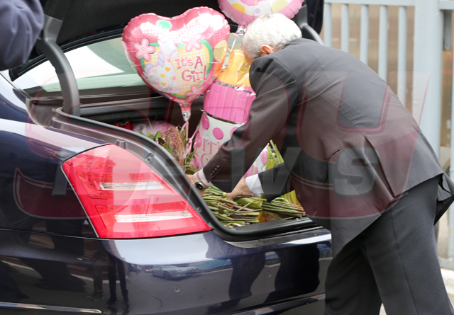 În timp ce şoferul a cărat pungile cu cadouri - majoritatea haine de firmă şi jucării pentru Maria Cristina -, Dragoş Bâşteanu şi-a transportat fetiţa într-un coşuleţ, iar artista îşi ţinea graţioasă în braţe numeroase flori primite.