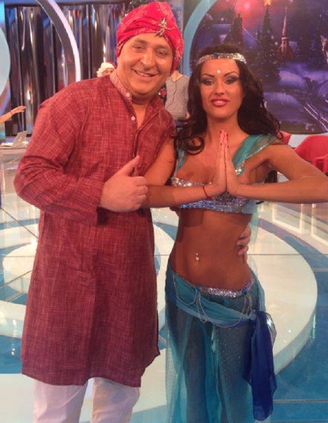 Focoasa brunetă va face furori la o filmare de la Antena 1, Daniela a îmbrăcat un costum de cadână care i-a scos în evidenţă atuurile fizice. Vedeta s-a fotografiat cu Salman Khan, mai exact cu Vali Vijelie, iar acesta a luat-o de mijloc vrând s-o strângă la piept. "Eu şi Salman Khan vă pregătim nişte sărbători pe cinste la Acces Direct! De abia aştept", a scris Daniela pe Facebook.