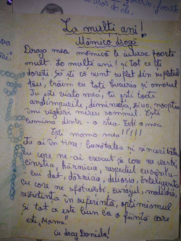 Puţin mai emoţionantă este scrisoarea pe care a scris-o pentru mama ei acolo unde îi prezintă dragostea ei necondiţionată.