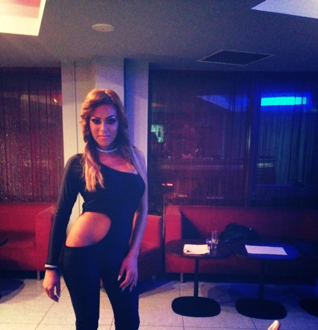 Machiată în culori stridente, pentru ca ochii să-i fie puşi în evidenţă, Daniela Stan nu e mai subtilă nici când vine vorba de ţinute. Într-o salopetă neagră, perfect mulată pe corpul apetisant, blonda şi-a lăsat la vedere exact zona în care trebuia să se afle o parte a lenjeriei intime. Oare dansatoarea a renunţat cu totul la chiloţi, sau a optat pentru o pereche de bikini minusculi?