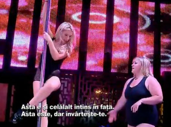 Întregul moment a fost îndrumat de căter Emma Haslam, cunoscuta dansatoare la bară, grăsuţă, care a impresionat juriul unui concurs de talente din Marea Britanie.