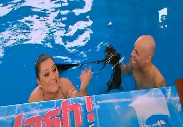 Părul fals pe care Bianca l-a purtat şi care a aparţinut, cândva, mamei sale s-a împrăştiat în apă şi l-a oripilat pe Mircea Zara, care se afla în bazin, alături de ea.