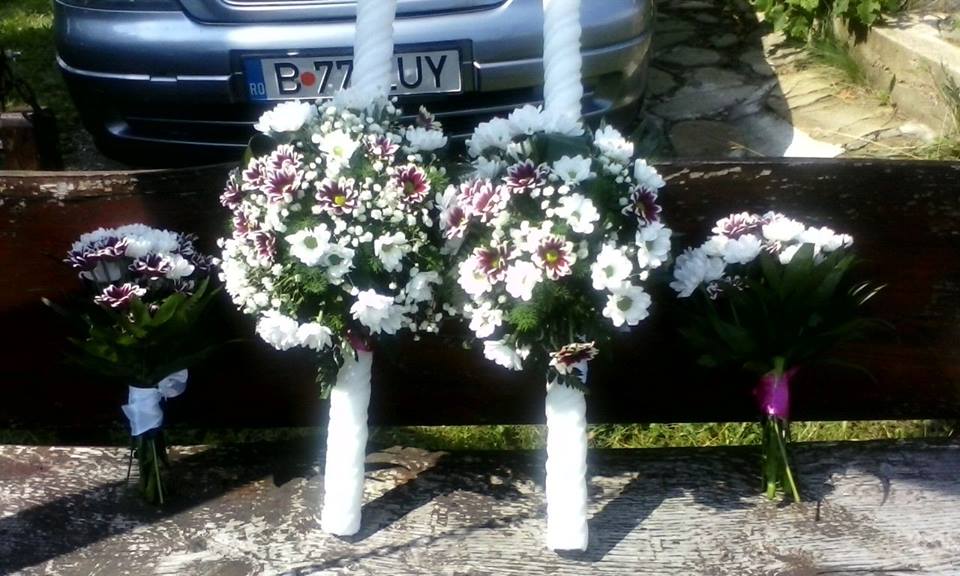Mesajul cântăreţei este însoţit de o imagine în care apar lumânările de nuntă şi buchetele de flori.