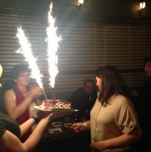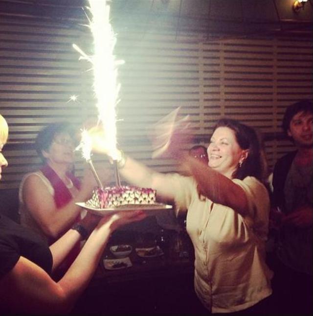 Delia a vrut să-şi sărbătorească mama "ca la carte", aşa că i-a pregătit acesteia un tort cu artificii. În jurul tortului s-au adunat toţi invitaţii, iar aceştia i-au cântat sărbătoritei "la mulţi ani" în cor. Delia a fotografiat tot momentul după care a postat pozele pe contul personal de socializare.