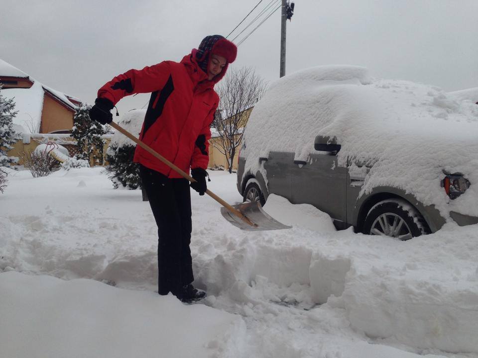 Frumoasa blondă a postat recent pe pagina personală de Facebook câteva fotografii de la deszăpezire. Roxana este nemulţumită pentru că munceşte în zadar, fiindcă ninsoarea se aşterne din nou.