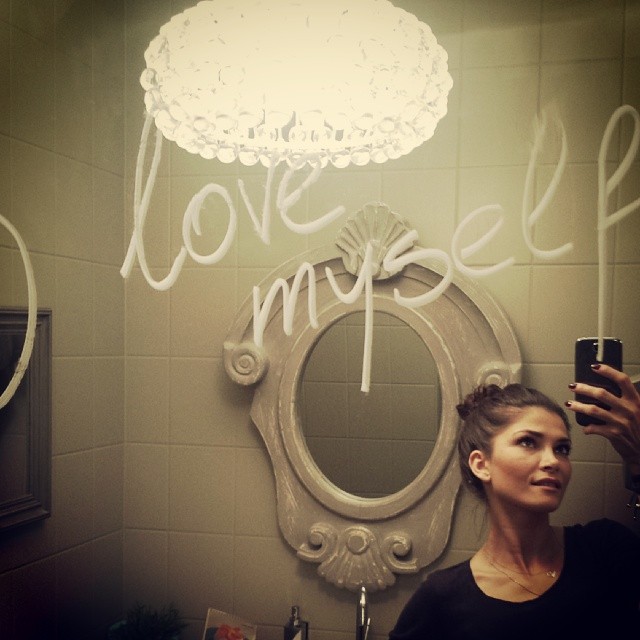 Prezentatoarea TV a postat o fotografie pe contul de Instagram în care le arată prietenilor virtuali că şi-a cumpărat o oglindă, pe care scrie: "Mă iubesc".