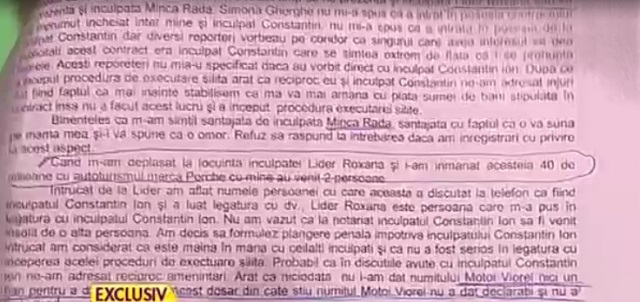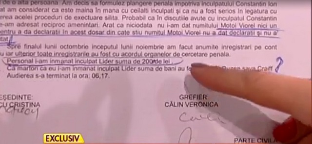 În sprijinul vorbelor sale, vrăjitoarea Vanessa a prezentat o declaraţie din dosar în care Oana Zăvoranu ar fi recunoscut că i-ar fi dat numai 4.000 de lei.