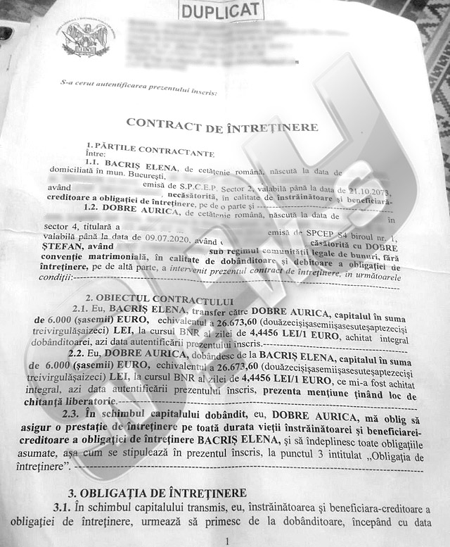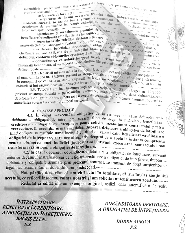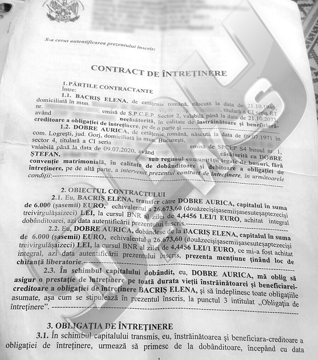 Mai exact, bunica Roxanei, ne-a arătat, printre lacrimi, că deține dovezi și documente conform căreia, de-a lungul întregii sale viețe, câte zile i-au mai rămas bătrânei, trebuia să fie întreținută de familia iubitei lui Florin Salam în schimbul locuinței pe care le-o cedează după moarte.