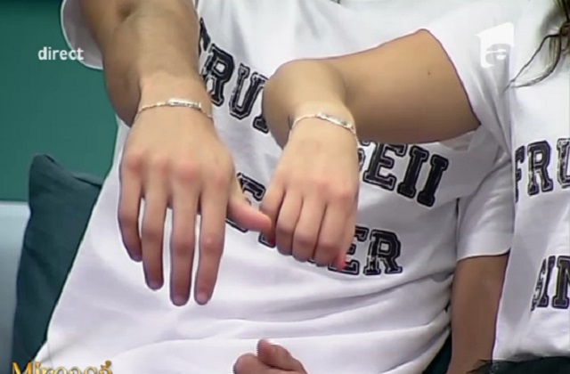 Cei doi şi-au făcut imprimat două tricouri albe pe care scrie "Frumuşeii together" şi "Frumuşeii since 21" ("Frumuşeii împreună" şi "Frumuşeii din 21) şi le-au purtat astăzi în platoul emisiunii "Mireasă pentru fiul meu". Ca şi cum n-ar fi fost suficient, aceştia au purtat brăţări de argint cu mesaje gravate. Aceştia au mulţumit tuturor susţinătorii cuplului şi şi-au arătat brăţările. Textul gravat pe brăţările din argint este "A V 21.09.2015"