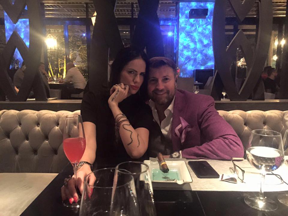 Într-una dintre fotografii, designerul apare lângă o brunetă misterioasă, lângă care zâmbește din toată inima, semn că îi face mare plăcere compania sa.