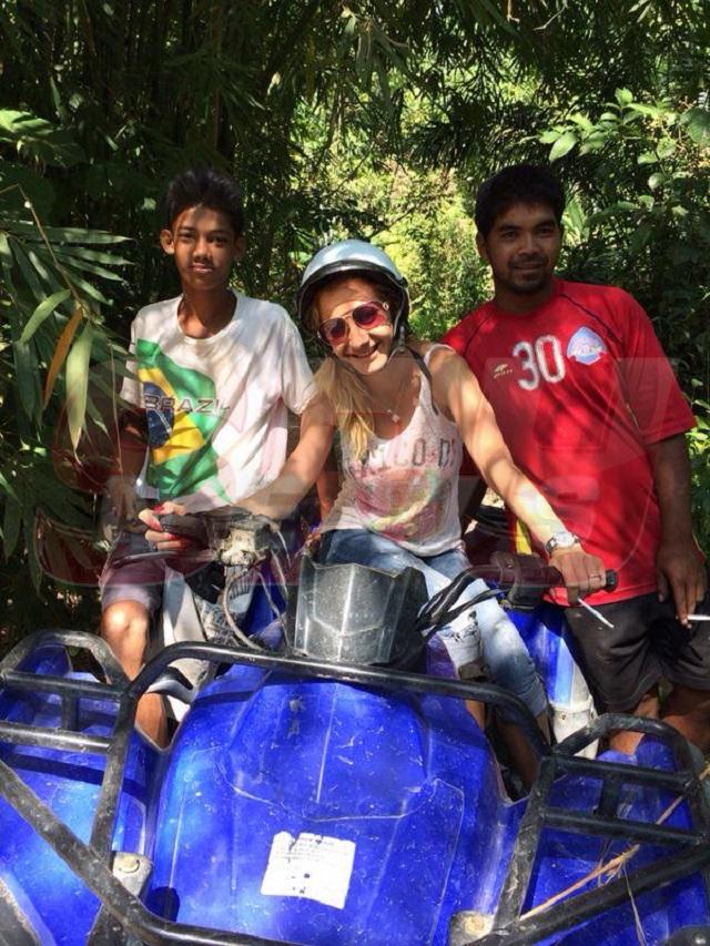 Alice a profitat din plin de zilele petrecute acolo şi s-a aventurat să practice câteva sporturi extreme, starleta porno dându-se cu o tiroliană lungă de câteva sute de metri şi a trăit senzaţii tari în apele unui râu furios în timp ce făcea rafting, iar apoi s-a „liniştit” plimbându-se prin jungla virgină de acolo, călare pe un ATV, iar apoi a survolat insula cu un elicopter.