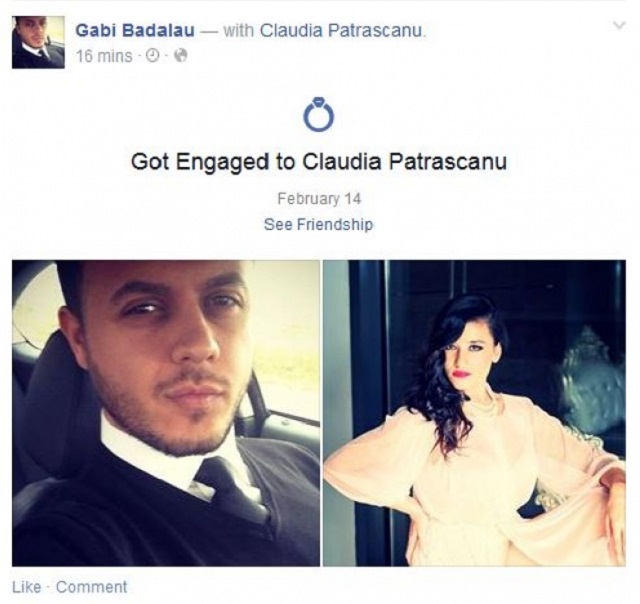 Claudia Pătrăşcanu şi Gabi Bădălău s-au logodit sau cel puţin asta a dat de înţeles omul de afaceri când şi-a schimbat statusul pe contul de Facebook. Deşi se iubesc doar de 5 luni, lucrurile merg perfect între cei doi şi sunt pregătiţi să facă pasul cel mare, iar Gabi Bădălău le-a dat fanilor vestea cea mare: vrea să-şi ducă iubita la altar.