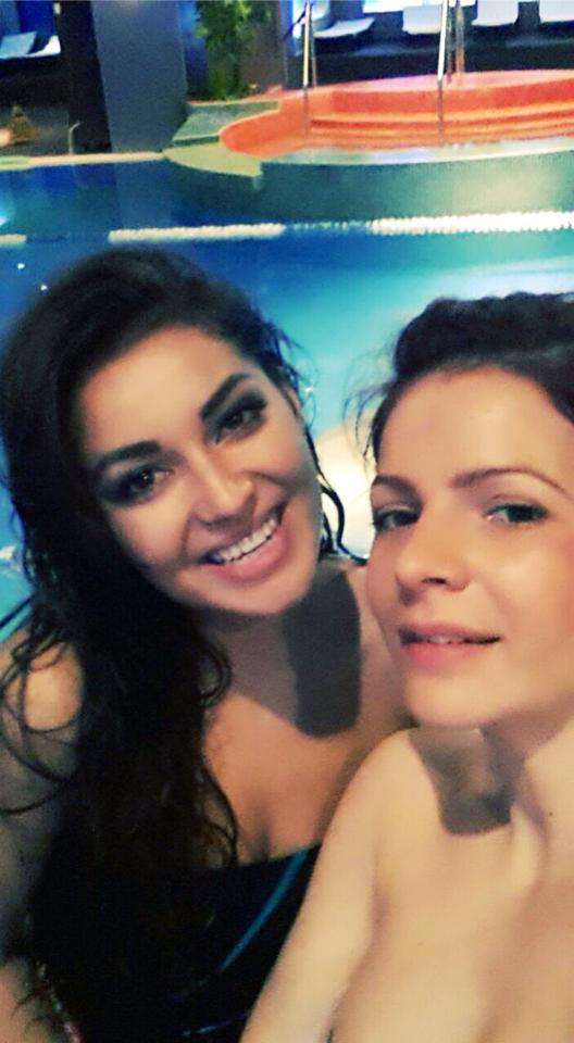 În imagine, artista apare împreună cu o prietenă, la piscină. Fata goală şi artista udă au vrut să le arate prietenilor virtuali cum se distrează ele, însă imaginea este una demnă de filmele pentru adulţi.