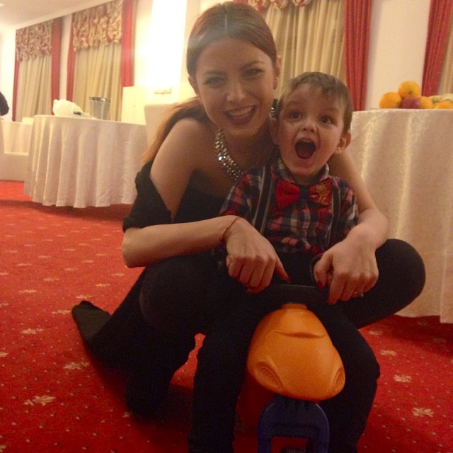 Aflată la un eveniment de amploare, Elena Gheorghe a uitat pentru un moment de cei din jur şi a dat în mintea copiilor. Chiar dacă ţinuta elegantă nu se preta la o astfel de acţiune, solista nu s-a sfiit să se urce alături de fiul ei pe micuţul autovehicul: "Cu motoru' lui Nicholas", le-a transmis fanilor săi virtuali.