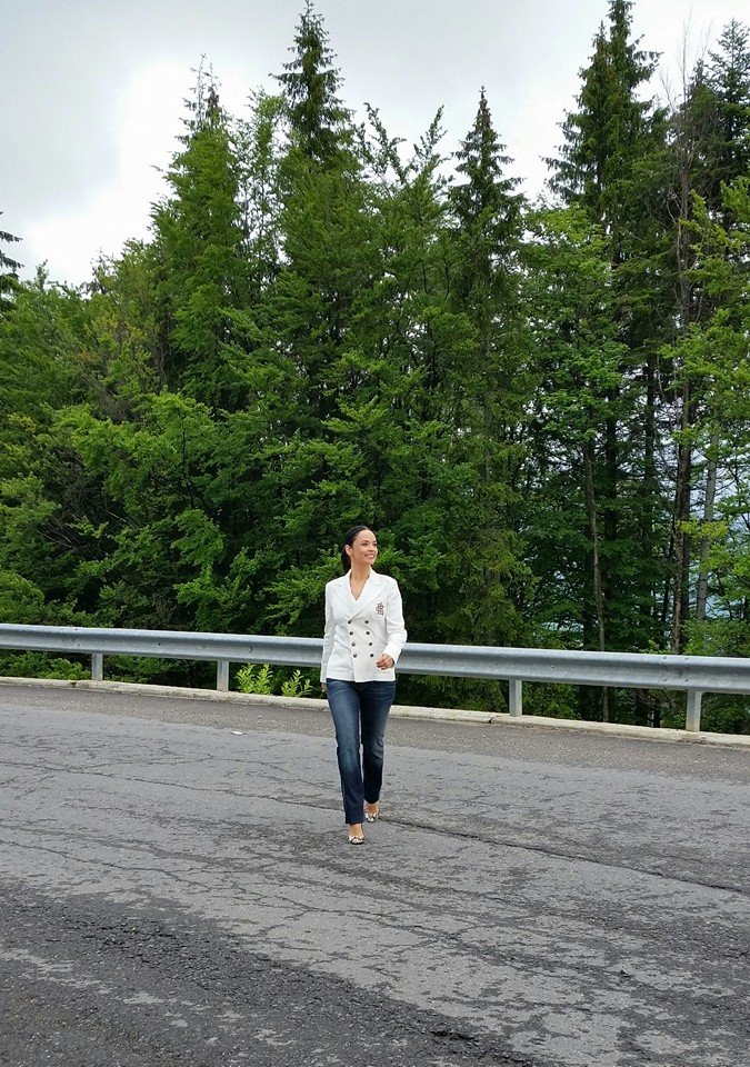 Deşi a asistat la un maraton desfăşurat la munte, Andreea Marin a ales, acum câteva zile, să poarte tot o ţinută elegantă.