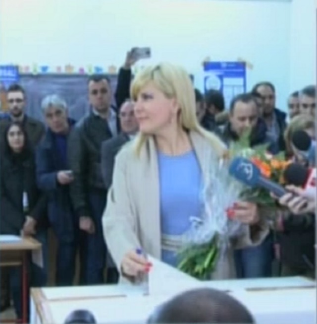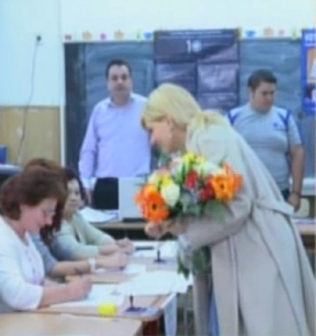 Elena Udrea s-a prezentat la secţia de vot de la primele ore ale dimineţii. Aspiranta la funcţia de Preşedinte al României nu a renunţat la modă nici în ziua votului.