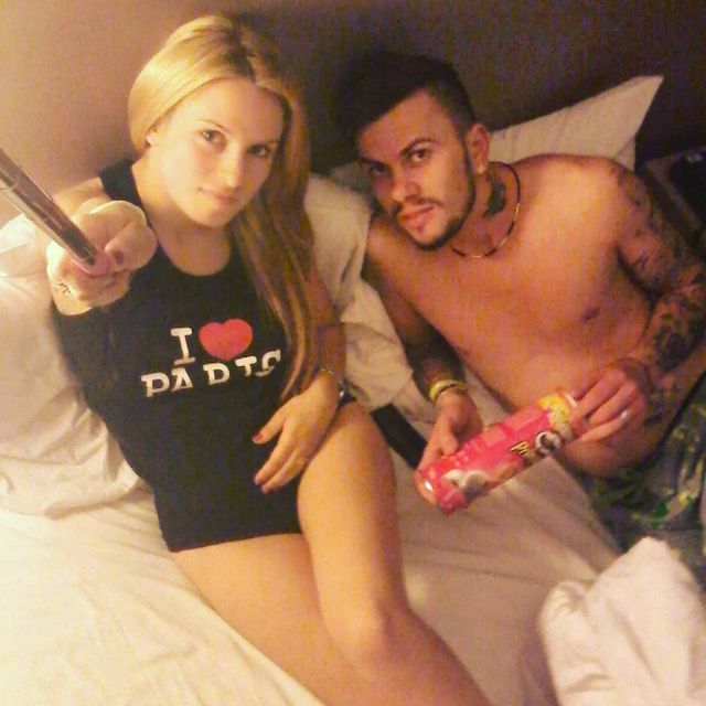 Cei doi s-au fotografiat în camera de hotel, într-o ipostază foarte sexy. El este la bustul gol, iar Elly este îmbrăcată doar într-un tricou şi lenjerie intimă.