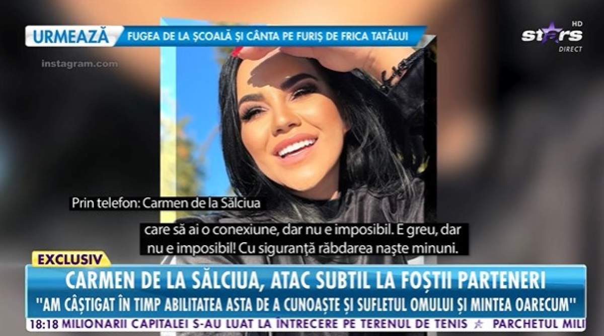 După ce a dat de înțeles că foștii ei parteneri nu au avut o minte prea sclipitoare, Carmen de la Sălciua a dezvăluit cum trebuie să fie alesul ei. Deși nu a avut prea mult noroc până acum, vedeta este convinsă că într-o zi va găși bărbatul potrivit pentru ea. Se pare că viitorul ei partener trebuie să aibă cu ce se lăuda dincolo de aspectul fizic.