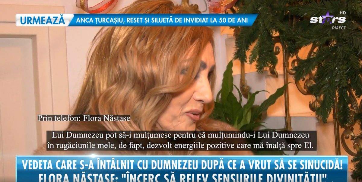 ''Poate pare paradoxal, eu asta sunt și niciodată nu m-am ascuns și nu am să pot să fiu altfel. Am reușit să înțeleg unde îl găsesc, de fapt, pe Dumnezeu și chestia asta m-a liniștit fantastic, mi-a dat o notă de siguranță pe care nu am avut-o niciodată'', a spus Flora Năstase.