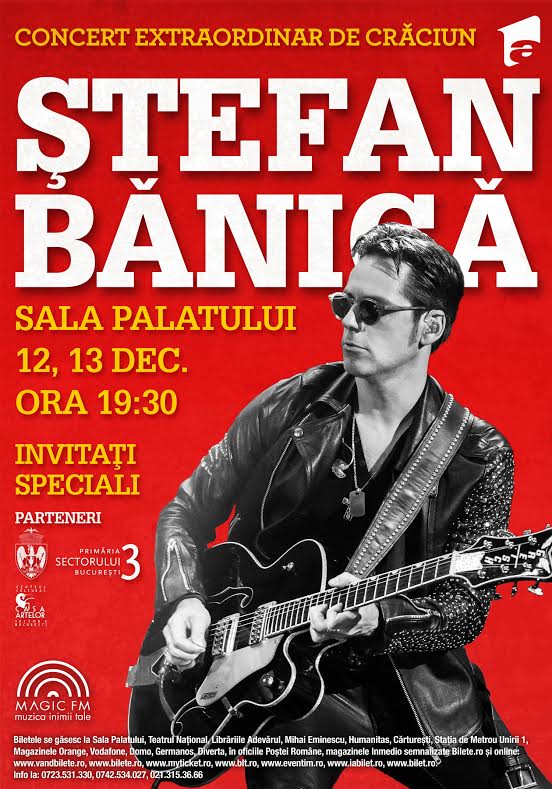 “Astept sa ne revedem la Sala Palatului, sa cream, prin muzica, magia specifica Craciunului si sa traim impreuna momente de neuitat. Este anul 13 pentru concertele mele de Craciun si consider ca e un numar norocos. De aceea m-am gandit sa-i premiez pe unii dintre cei care vor veni in decembrie la concerte si am creat Campania “13 cu noroc”, care este deja in desfasurare pe pagina mea de facebook, Stefan Banica Official (www.facebook.com/StefanBanicaOfficial). Anul cu numarul 13 va aduce 13 norocosi castigatori, cu care ma voi intalni la Sala Palatului in decembrie, care vor primi premii si, in plus, le voi da 13 invitatii duble pentru un concert special, pe care il voi sustine in luna martie, anul viitor”, a declarat Stefan Banica.