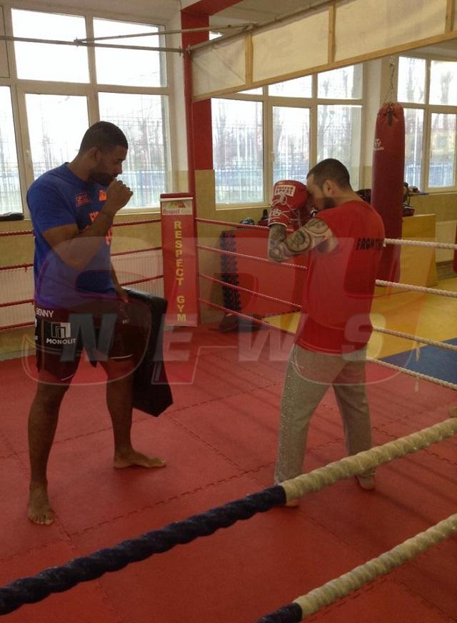 „Eu îl învăţ kickbox, iar el o să mă ducă la studio să mă chinuie puţin. Aşa cum l-am chinuit şi eu la sală”, ne-a spus Benny, încântat de lecţia pe care a predat-o – din care nu au lipsit loviturile de pumn şi de picior bine plasate.