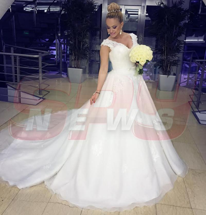 Mai exact, artista va avea la nuntă un tort cu cinci niveluri, cu o înălțime de 85 cm, fiecare nivel având forma pătrată. Tortul realizat de specialiștii unei cofetării de lux și va avea baza de mousse din două ciocolate, iar compoziția va conține bezea cu fructe de pădure și căpșuni proaspete românești. Desertul va fi decorat cu inițialele numelor celor doi miri, A și S.