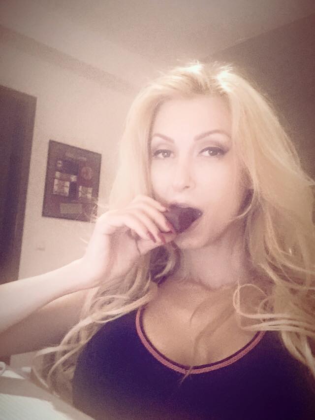 Vedeta a postat pe o reţea de socializare o fotografie în care apare muşcând dintr-o bomboană de ciocolată, mărturisind că aceasta este slăbiciunea ei.