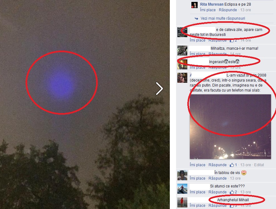 Un fenomen ciudat a putut fi observat zilele acestea în Capitală! Bucureştenii susţin că au observat pe bolta cerească o lumină ciudată, albastră, rotundă. Printre aceştia se numără chiar creatoarea de modă Rita Mureşan.