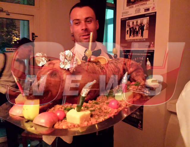 Dacă purceluşul la proţap a fost impresionant, berbecuţul a făcut senzaţie! Chelnerii au adus pe mesele invitaţilor un platou mare, pe care a fost aşezat berbecuţul şi decorat cu diferite legume şi fructe.
