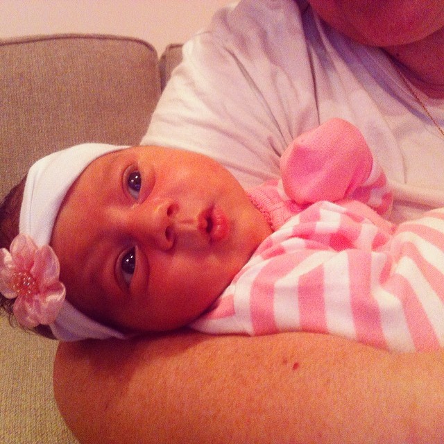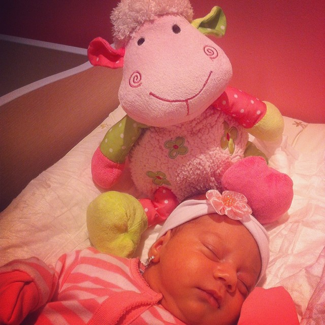 Artista a publicat mai multe poze pe contul de Instagram, în care apare fetiţa ei când doarme şi când se bucură de lucrurile pe care le descoperă zilnic. Maya este îmbrăcată în roz, are o floricică în păr şi se minunează când mama ei o ţine în braţe. Micuţa adoarme ca un îngeraş în pătuţ lângă o jucărie cu o vacă tot roz.