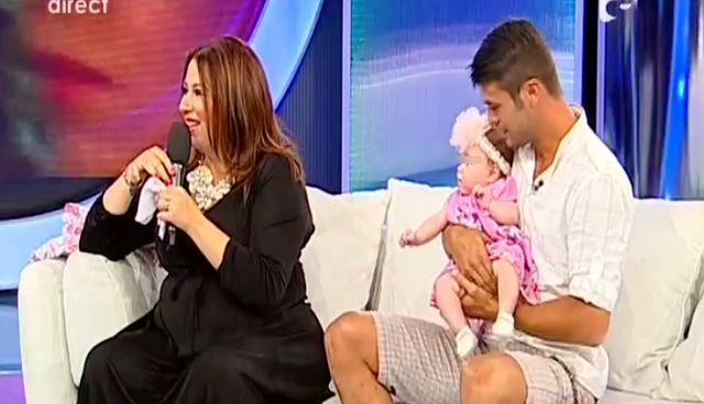 VIDEO Fetiţa Oanei Roman, pentru prima dată într-un platou de emisiune! Micuţa a adormit în braţele tatălui!