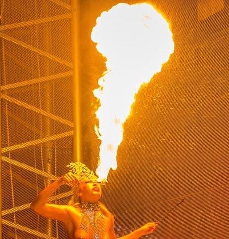 Este, cu siguranță, una dintre dansatoarele care, la apariția pe scenă, reușeșete să aprindă imaginația oricărui bărbat. Cu atât mai mult cu când, de cele mai multe ori, apare aproape goală și, pentru a fi sigură că nu rămâne neobservată, se ”joacă” cu focul.