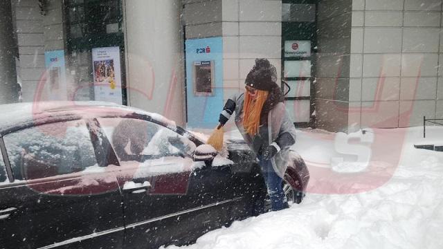 Vremea de afară le-a dat mari bătăi de cap vedetuţelor noastre, frumoasele showbiz-ului trezindu-se că sunt nevoite să se lupte cu stratul mare de nămeți depus pe mașinuțele lor și, culmea, că trebuie să se descurce fără niciun ajutor.