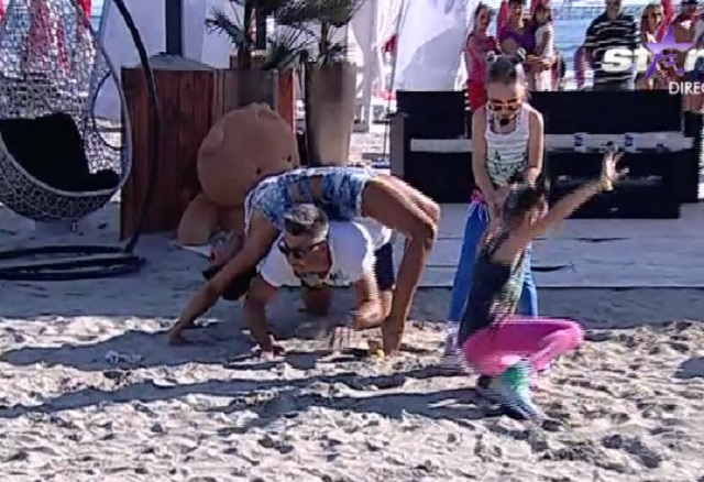 Florentina Raiciu le-a oferit domnilor o privelişte de neuitat, încă de la primele ore ale dimineţii. Frumoasa asistentă de la "Star matinal... e pe val" a făcut podul din picioare.