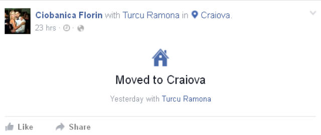 Fostul concurent s-a mutat împreună cu iubita lui, Ramona, în oraşul Craiova. Acesta a făcut anunţul pe pagina unui site de socializare, iar prietenii virtuali i-au urat toate cele bune. "Să fiţi fericiţi", a scris un internaut.