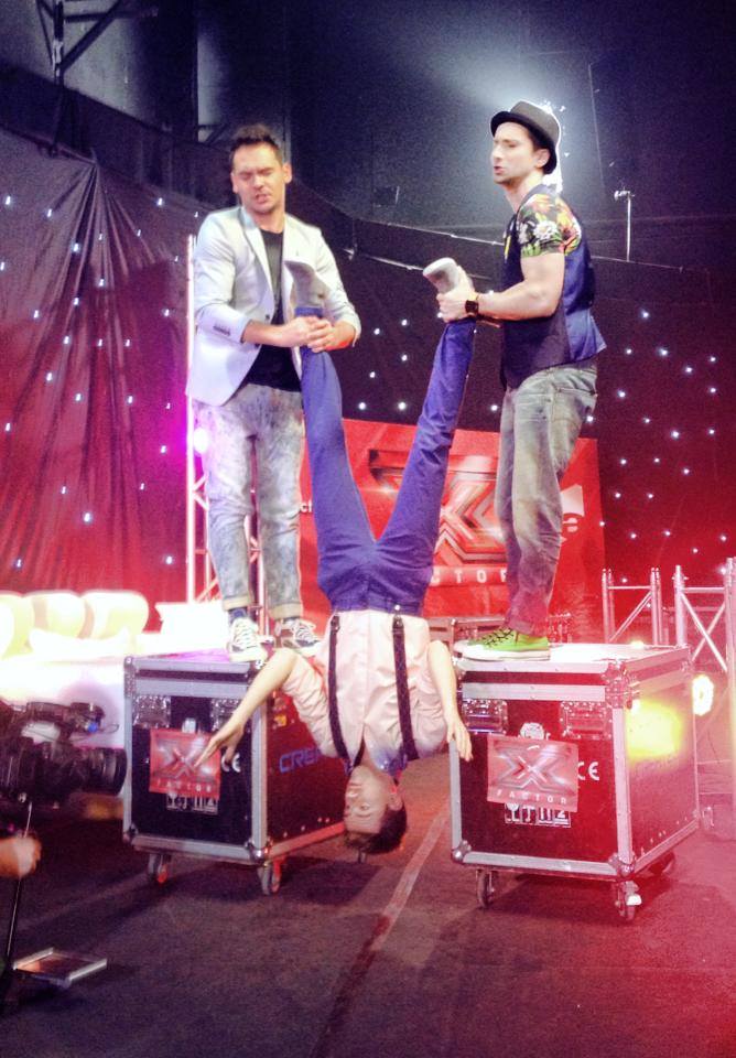 Răzvan şi Dani l-au prins de picioare şi l-au întors cu capul în jos, pe platourile X Factor. Florin nu pare deloc deranjat de situaţie, ba, dimpotrivă, a gesticulat amuzant din mâini. "Anul asta te astept si pe tine la XFactor ... O sa fiu acolo, cu Razvan si Dani", i-a informat ei pe fani.