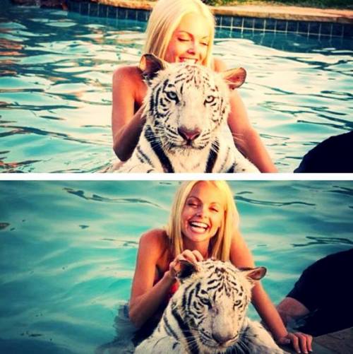 Homepage » Monden » FOTO Actriţa de filme XXX fotografiată în piscină cu un tigru!!!