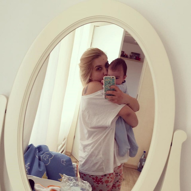 Adda s-a fotografiat în fața oglinzii în haine de casă, fără machiaj și cu cearcănele cât pumnul. Dacă artista a vrut să transmită emoție prin imaginea cu copilul în brațe, Adda a transmis mai multe semne de întrebare legate de aspectul ei.