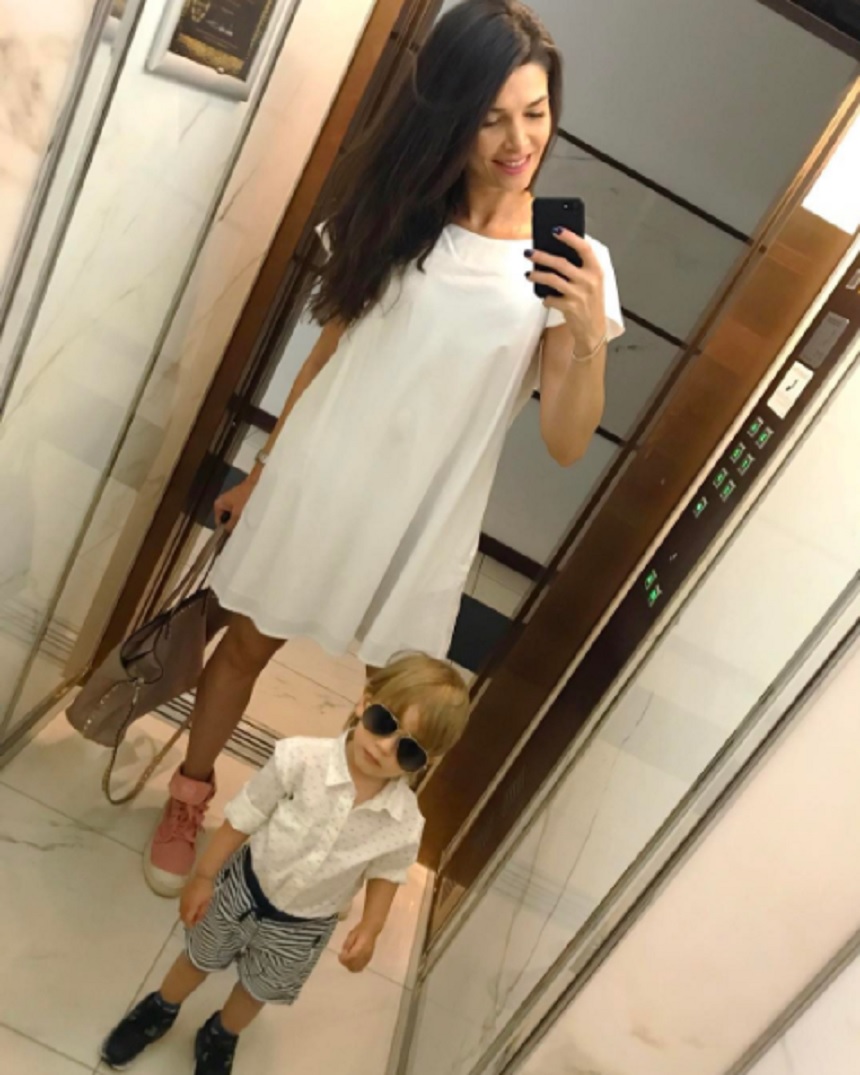 Alina Puşcaş a postat acum puţin timp pe una dintre reţelele de socializare o imagine cu fiul său, din lift. Ce atrage toate privirile este fiul său, care poarte o cămaşă albă, pantaloni scurţi în dungi şi pantofi sport. Privirea a ales să o ascundă în spatele unei perechi de ochelari.