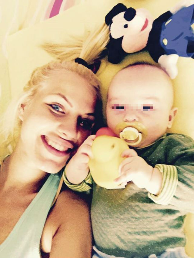 Selfie-ul este făcut în pat, iar în el apare Amna, care are un zâmbet larg pe faţă, fiul ei cu suzeta în guriţă şi o jucărie, probabil este una dintre preferatele micuţului.