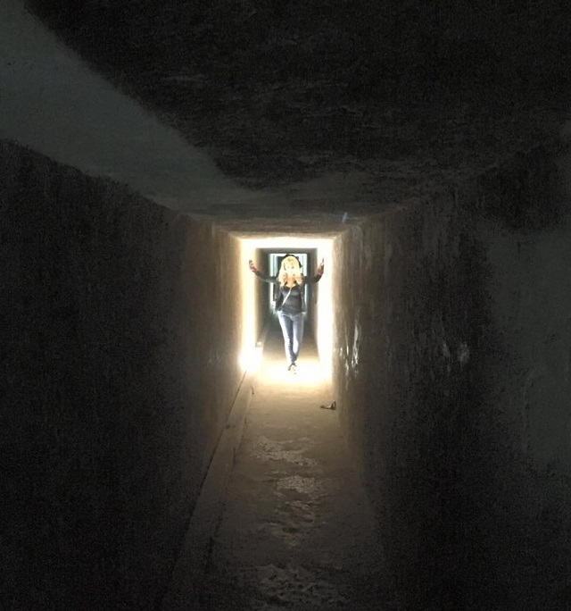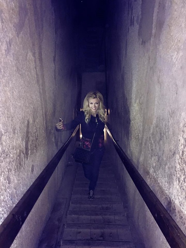 "Da, am făcut-o şi p-asta. Cam aşa arată în interior piramida mijlocie dintre cele 3 piramide din Ghiza (Egipt). Am avut o senzaţie uluitoare şi foarte interesantă când am intrat în ea", a scris Andreea Bălan pe contul său de socializare.