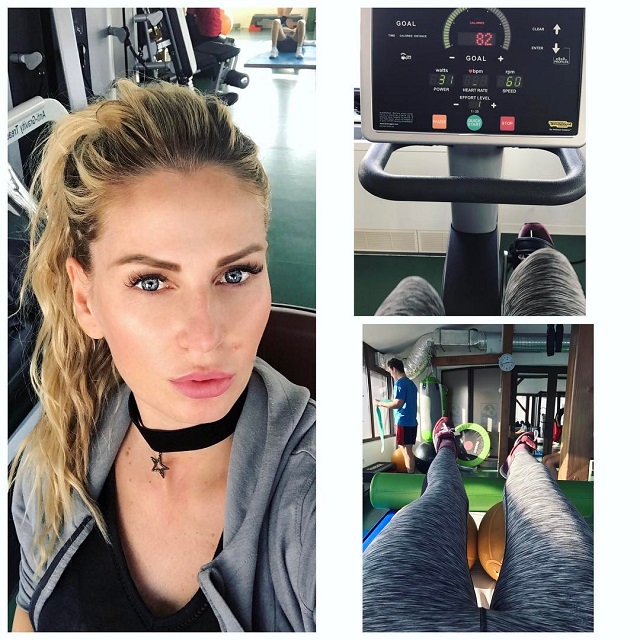 Cântăreaţa s-a fotografiat în sala de recuperare, acolo unde face exerciţii fizice pentru picioare şi pentru a fi în formă maximă.