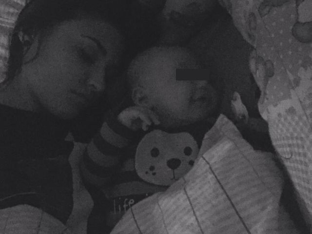 În imagine apare Antonia alături de fiul ei, adorabilul Dominic, care doarme liniştit în pat, lângă mămica lui.