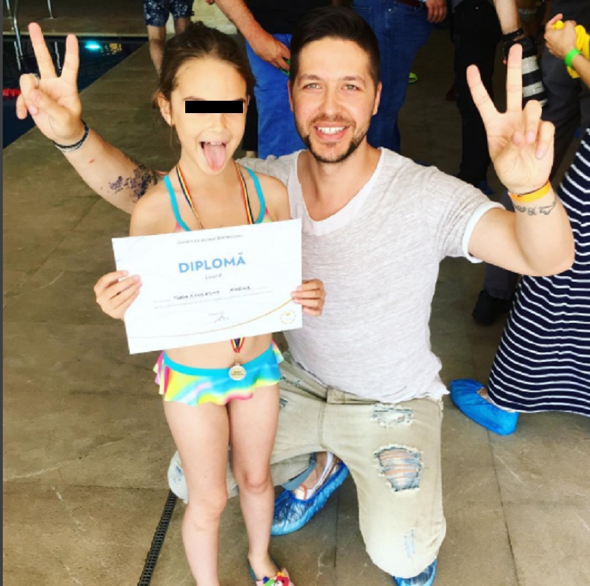 "Locul II pentru Karina!! Proud of you my little princess! ❤️❤️❤️ #swimming" a scris artistul.