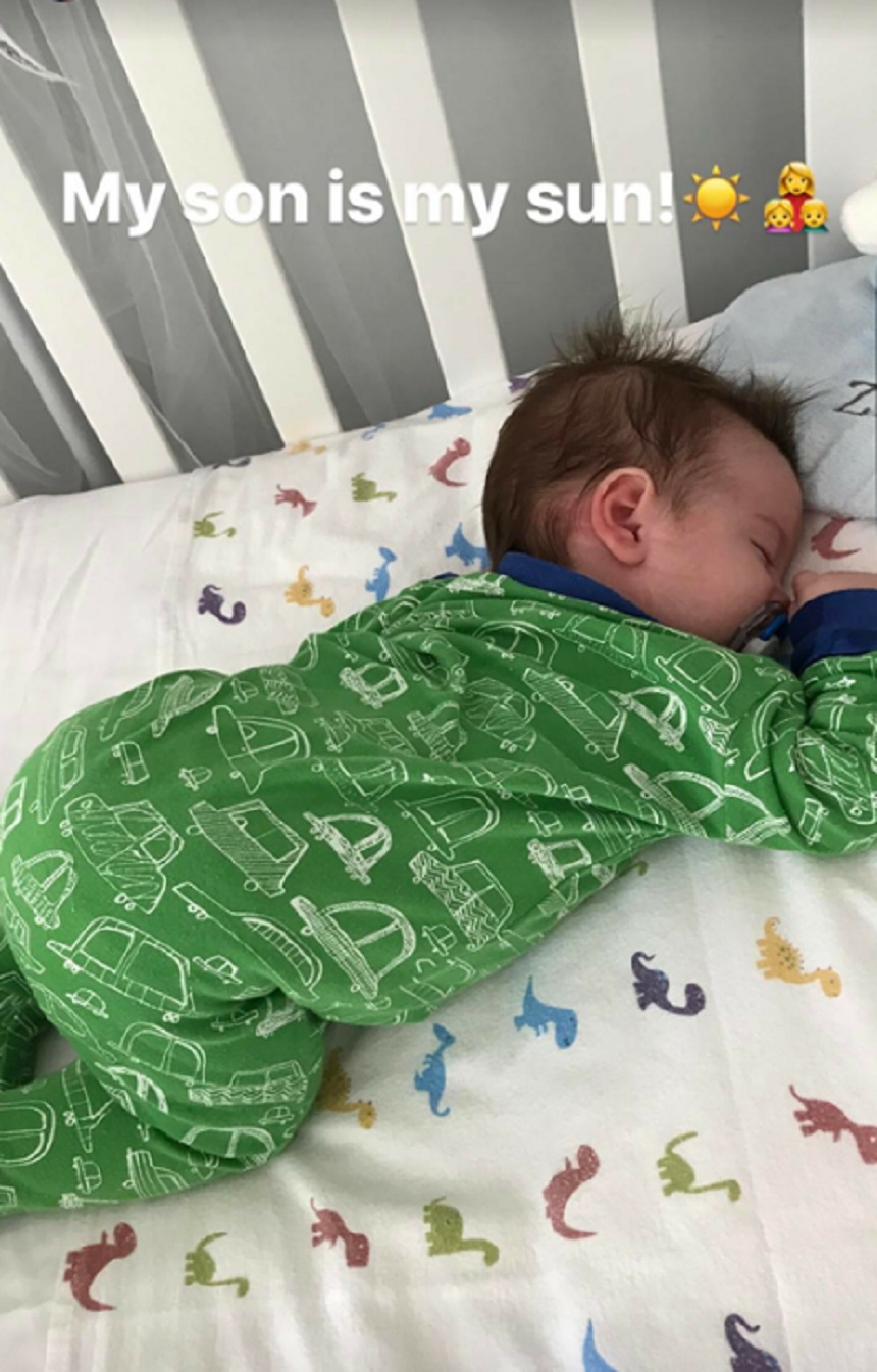 Recent, Marina Dina postat pe una dintre reţelele de socializare o imagine în care l-a suprins pe Zia, în pătuţ, îmbrăcat într-un body verde.
