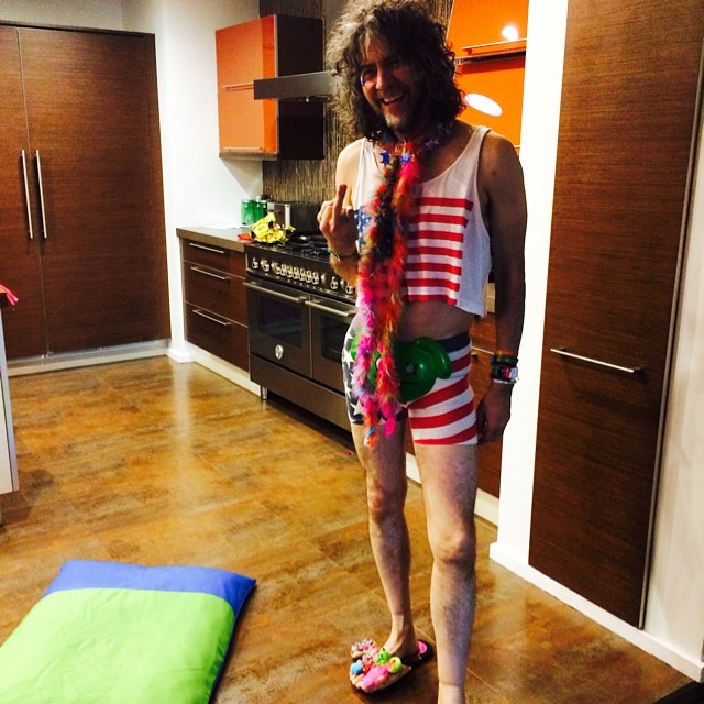 Se pare că distracţiei lui Miley i s-a alăturat şi Wayne Cone, care a îmbrăcat un costum imprimat cu steagul SUA.